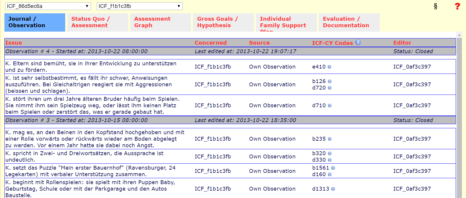 Online Demo ICF-TRAIN Documentation and Evaluation ToolICF-CY is considered as the major (WHO defined) standard and most important method for describing and assessing limitations AND resources in the field of early childhood education and early intervention in a comparable way. The Online Demo of the ICF-TRAIN Documentation and Evaluation Tool demonstrates the possibilities of an ICF-CY based online documentation and evaluation tool to be used within Early Childhood Education and Care. At the same time this tool enables learning ICF-CY through the review of early intervention processes, the associated ICF-CY descriptions and the intervention goals derived therefrom. Go To ICF-TRAIN documentation and evaluation tool demo |